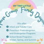 Visite nuestro programa Venga a ver qué hace único a My Tiny Little House Group Family Daycare. Si actualmente estamos ofreciendo visitas, puede solicitar o programar una visita en la parte superior de esta página.